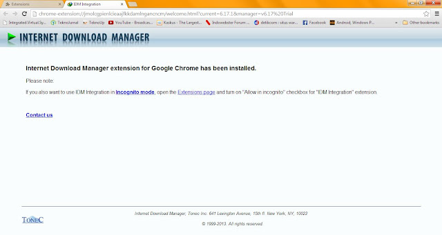 Selamat, ekstensi IDM sudah terinstal dengan benar. Bagai mana sob? tidak seberapa sulit kan? hehe